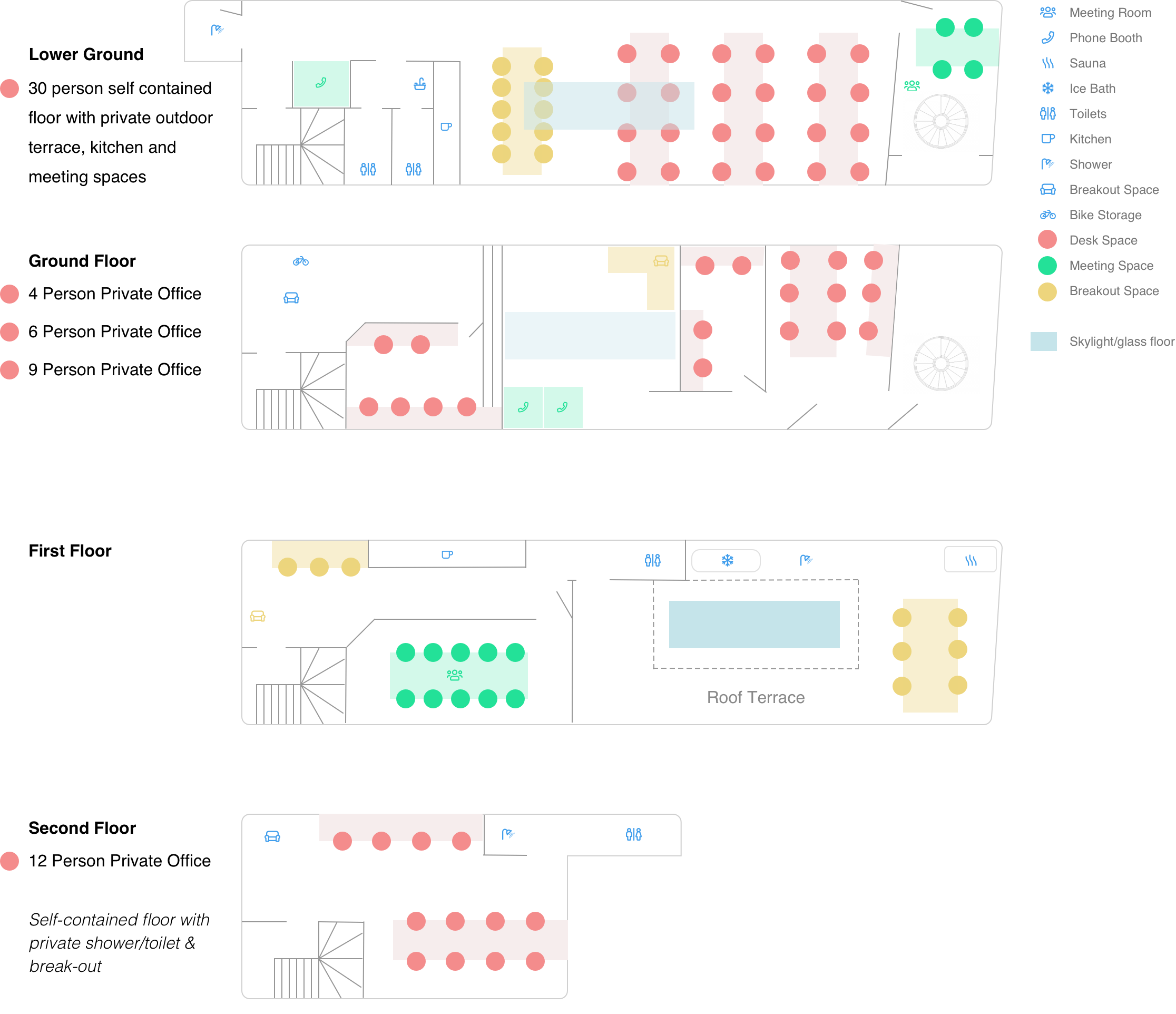 Located between Farringdon and Old Street, this boutique office space is designed for technology and creative businesses seeking a high-quality, flexible working environment. The building comprises just five private offices, offered on a simple, all-inclusive rent with a quarterly rolling notice period. Fully renovated and architect designed, the workspace sits on a quiet street beside a park and is fully furnished for immediate occupation. Amenities include meeting rooms, phone booths, sauna and ice bath facilities, showers, bike storage, and 24/7 access, supported by a 10Gbps leased-line fibre connection.